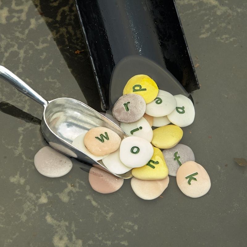 Leer op een praktische manier letters met deze sensorische alfabet steentjes. Deze populaire steentjes zijn speciaal gegoten uit de unieke steen- en harsmix van Yellow Door. Je kunt hiermee verkennen, onderzoeken, sorteren en verzamelen. Ze zijn duurzaam genoeg om te gebruiken in zand, water en buiten. Elke steen is gegraveerd en beschilderd met een letter, dit zal niet vervagen. De stenen hebben een afmeting tussen de 3 en 4,5cm. Veilig voor kinderen vanaf 2 jaar.