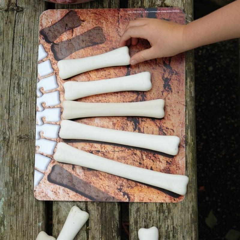 Gebruik de set met Dino Botten 16 stuks samen met deze spannende activiteitenkaarten. Zo kan je de dino botten matchen, tellen, vergelijken, ordenen en meten. De kaarten zijn gemaakt van duurzaam PVC en sterk genoeg om buiten te gebruiken (ook in het water). Elke set bevat 16 kaarten van 27,5 x 21 cm.