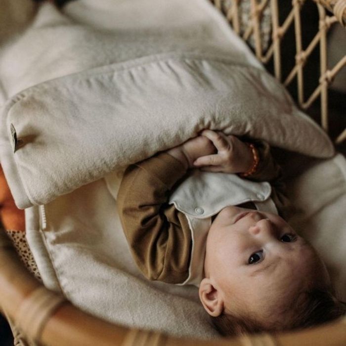 Wol is een natuurlijk vezel waardoor deze stof zeer goed ademt en als het zijn dienst heeft gedaan weer gemakkelijk composeert waardoor het product niet belastend is voor het milieu. Dit maakt wol super duurzaam en is ook nog eens erg sterk, ook na langdurig gebruik blijft deze wollen voetenzak mooi. Wol heeft van nature een beschermend laagje en is antistatisch, dit zorgt ervoor dat het geen vuil aantrekt.