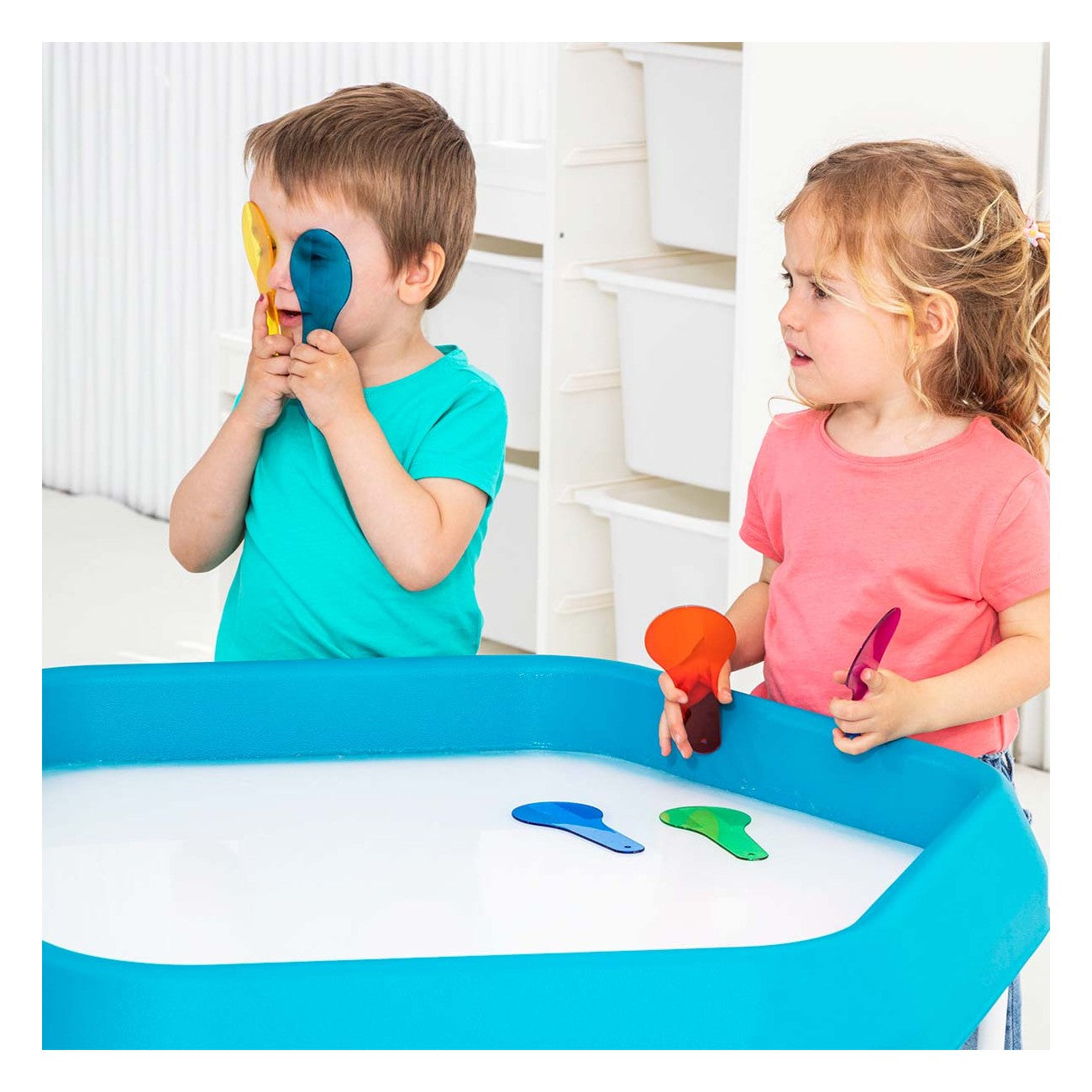 Perfect te combineren met lichttafels, lichtbronnen, andere transparante materialen zoals de transparent river rocks, spiegels, witte ondergronden voor kleurexperimenten, en tekenmateriaal voor creatieve combinaties. Ook geweldig in combinatie met natuurlijke materialen zoals bladeren, bloemen en doorschijnende stenen voor nog meer ontdekkingsmogelijkheden!