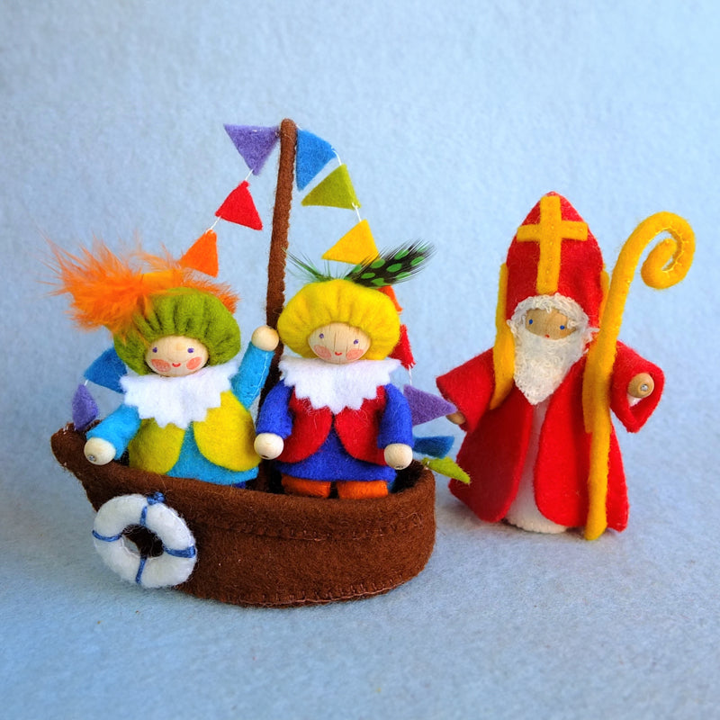 Combineer dit DIY vilten Sinterklaasbootje met 'Sinterklaas Kapoentje', de Vrolijke Pietenhanger, de Twee Pietjes of de Twee Acrobaten Pieten voor extra feestelijke decoratie!