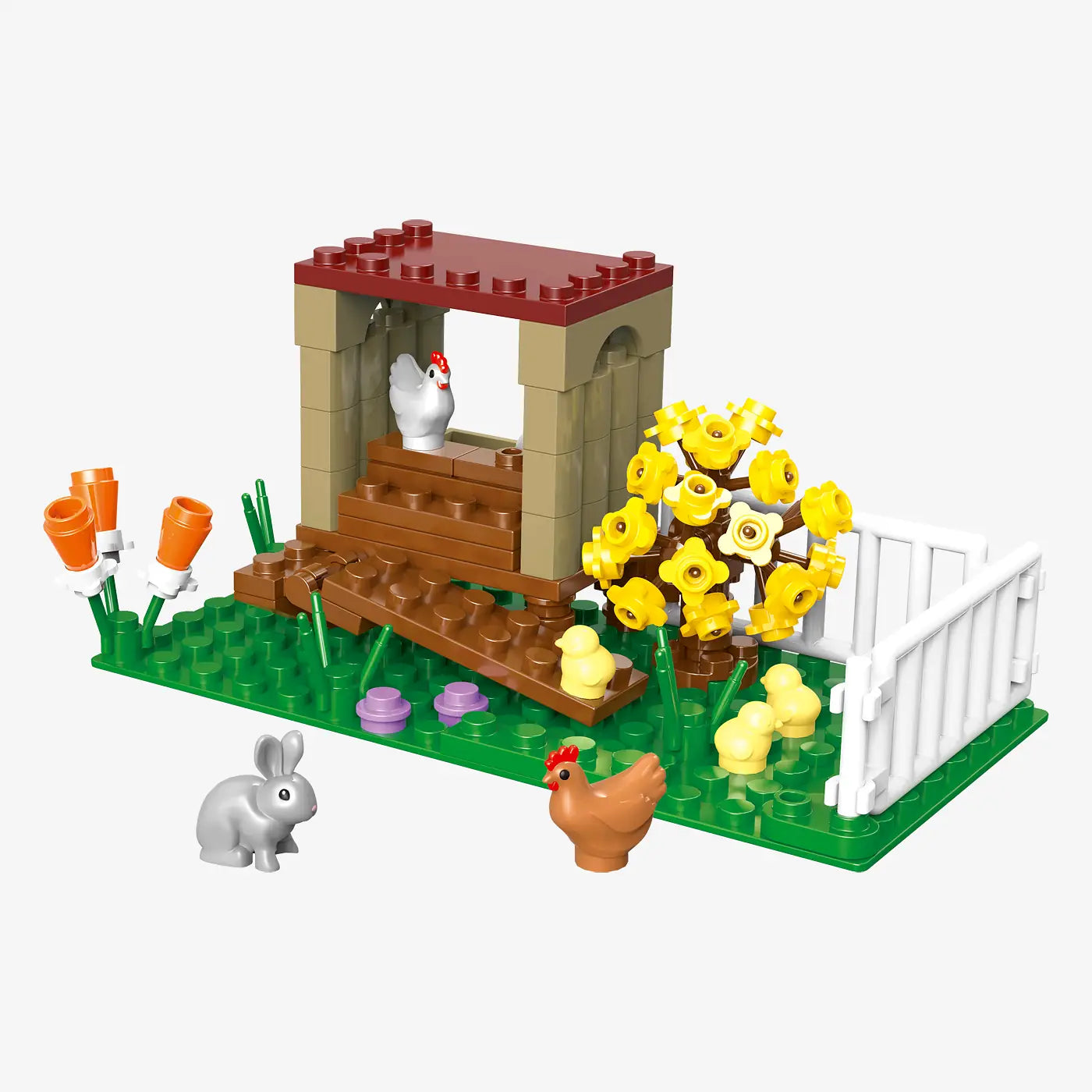 • Set bevat – 84 bouwstenen inclusief kippen, kippenhok, voerbakken en nestplekken.