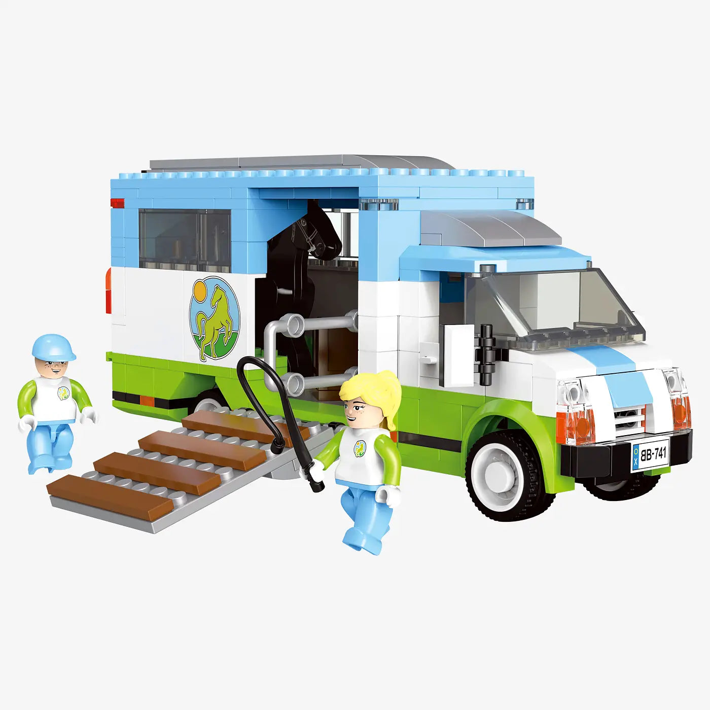 De BlueBrixx Horse Transporter set is een bouwset met 341 onderdelen waarmee je een realistische paardenaanhanger bouwt. Dankzij de neerklapbare laadklep kan het paard eenvoudig in- en uit de aanhanger lopen. De set bevat een paard, een minifiguur en accessoires zoals zadels en borstels, waardoor deze transportset perfect aansluit bij boerderij- of manege-scènes.