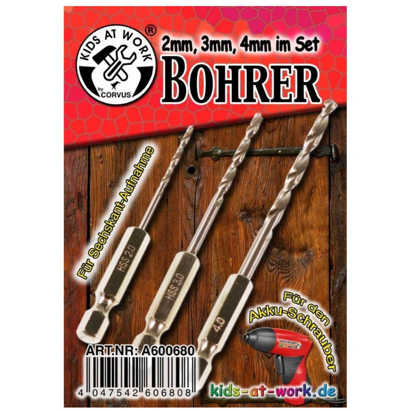 Deze borenset (3 boortjes van 2, 3, en 4 mm) maakt het gebruik van de accu-schroefboormachine veelzijdiger. Met de set boortjes kan de accu-schroefboormachine ook worden gebruikt om gaatjes in (kleine) plankjes te boren of als hulpmiddels om iets aan de muur op te hangen. Let op: het vermogen van de accu-schroefboormachine is niet toereikend genoeg om lange, diepe gaten te boren.