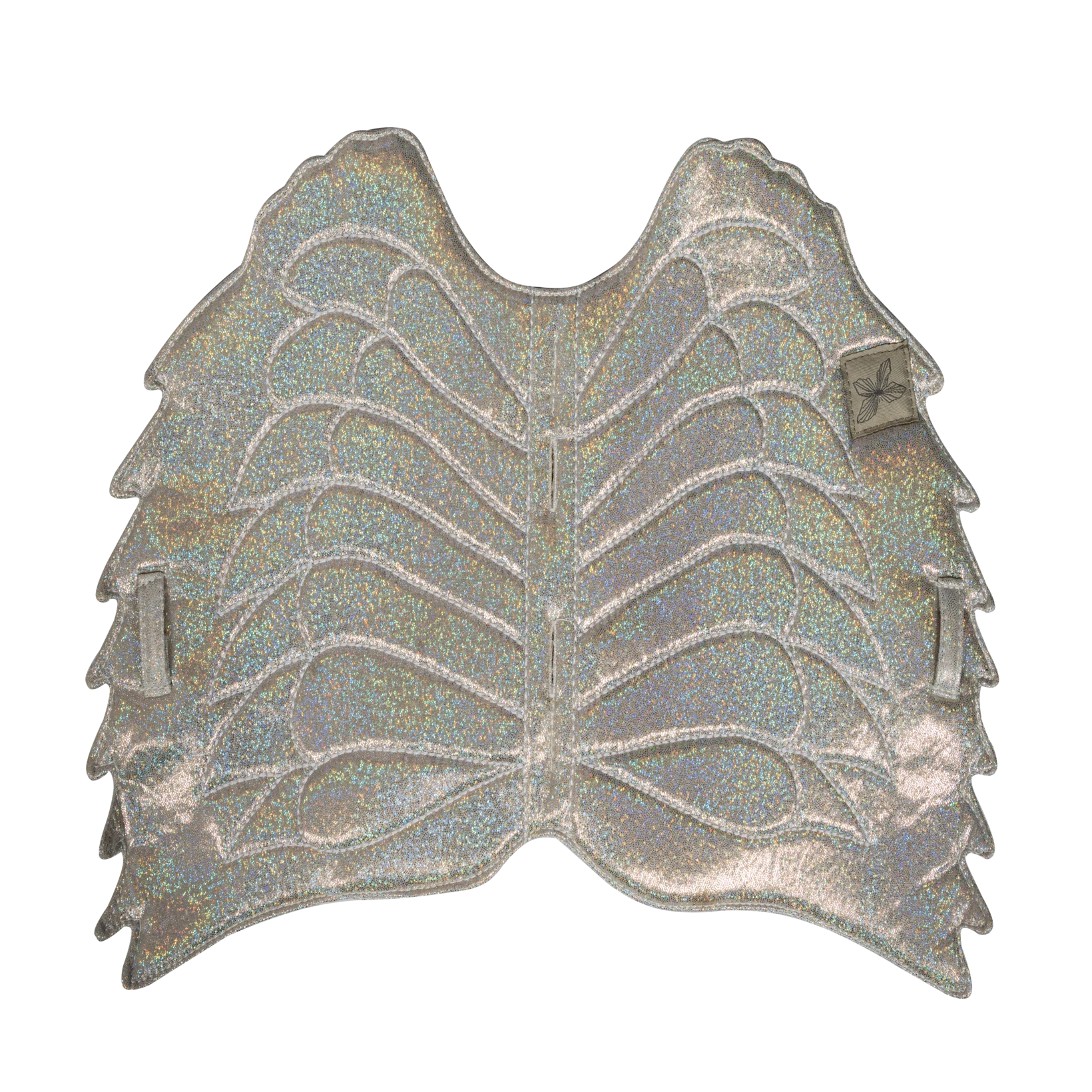 De set bevat een hoofdband van gladde, glinsterende stof die perfect past op je hobby horse. Het zadeldek heeft een uniek ontwerp in de vorm van delicate engelenvleugels of eenhoor vleugels. De bijbehorende sleutelhanger in blauwe en zilveren tinten voegt een extra laag elegantie toe.