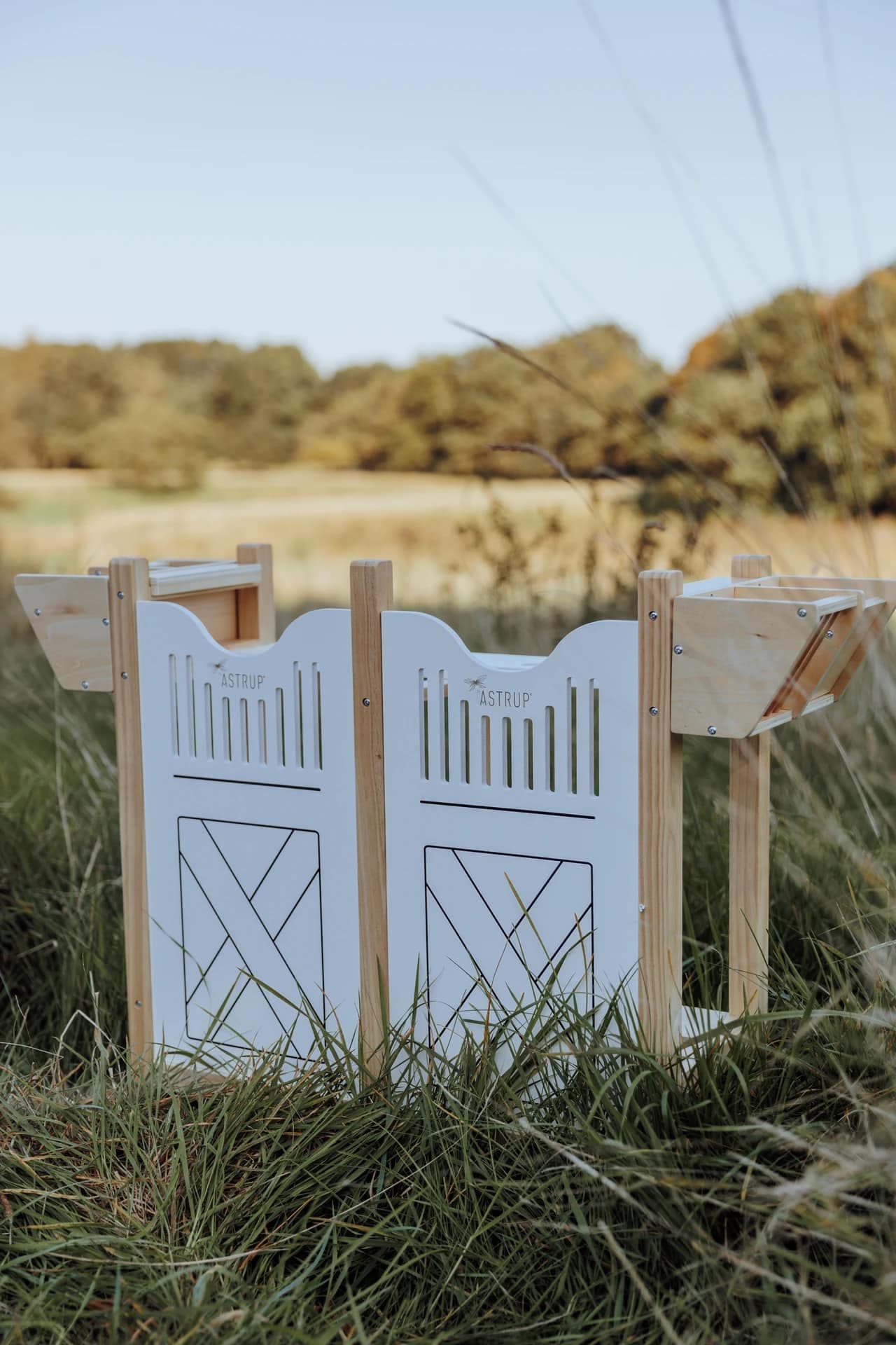 Deze prachtige stal van By ASTRUP biedt plaats aan vier stokpaardjes en is voorzien van staldeurtjes. Voor elk stokpaardje is er een hooiruif en een voerbak, die aan de zijkanten kan worden opgehangen. Echt zo leuk als je ook paardenmeisjes of jongens in huis hebt! Lekker thuis doen alsof je een manage hebt met echte (stok)paardjes!