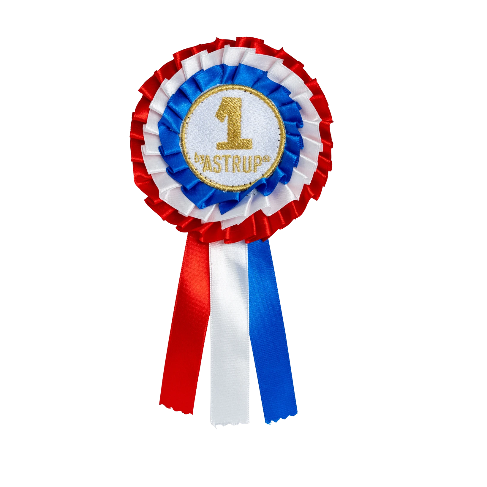 Deze rozet voor hobby horses van ByAstrup is een prachtige accessoire waarmee kinderen hun stokpaardje kunnen versieren voor competities en shows. Met zijn driekleurige rood-wit-blauw ontwerp zorgt de rozet ervoor dat elke hobby horse de winnaar kan zijn van elke competitie. Perfect te combineren met stokpaardjes voor extra speelplezier en trots.