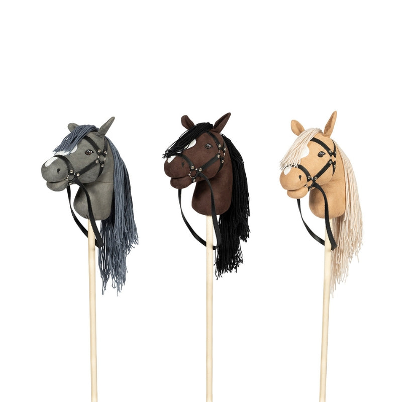 De paarden zijn er in verschillende kleuren: beige, grijs en bruin. De stokpaarden zijn gemakkelijk mee te nemen in de rugzak waar ze in geleverd worden.