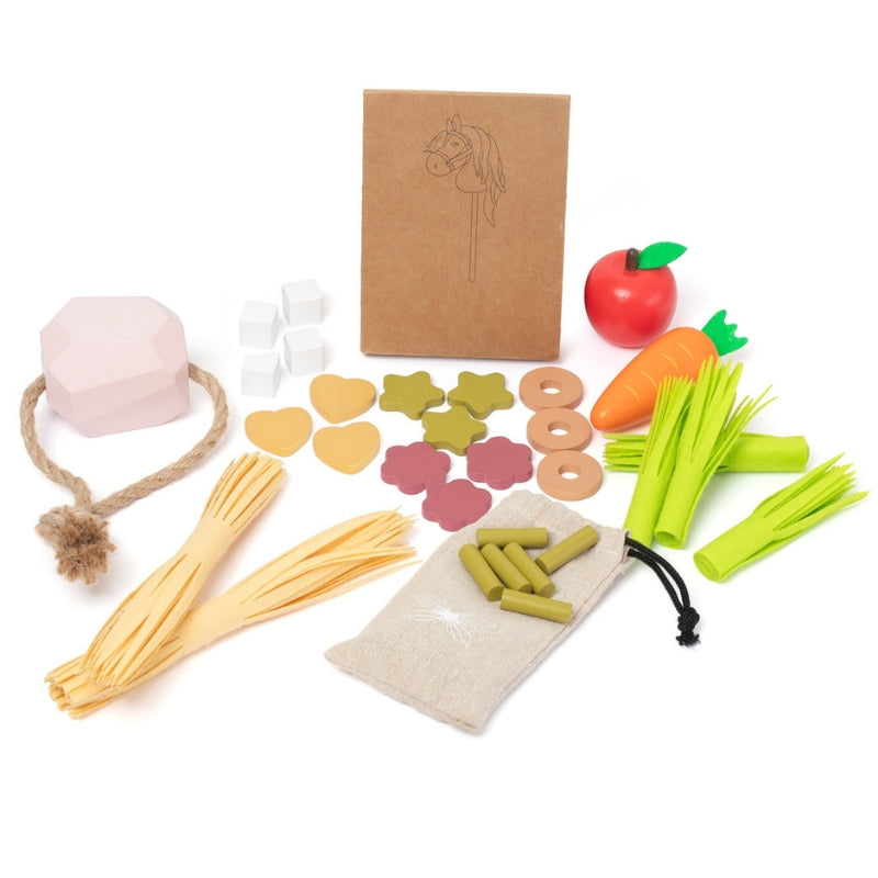 Deze deluxe voederset heeft alle benodigdheden om een paard te voeren en te verwennen. Het is niet alleen heel erg leuk om mee te spelen maar het leert kinderen ook verantwoordelijkheid en zorgzaamheid. Met deze complete set kan een kind urenlang bezig zijn met het rollenspel. Deze voederset bestaat uit: Wortel, appel, paardenbrokjes, snoepjes, suikerklontjes, stro, gras en een zoutsteen.