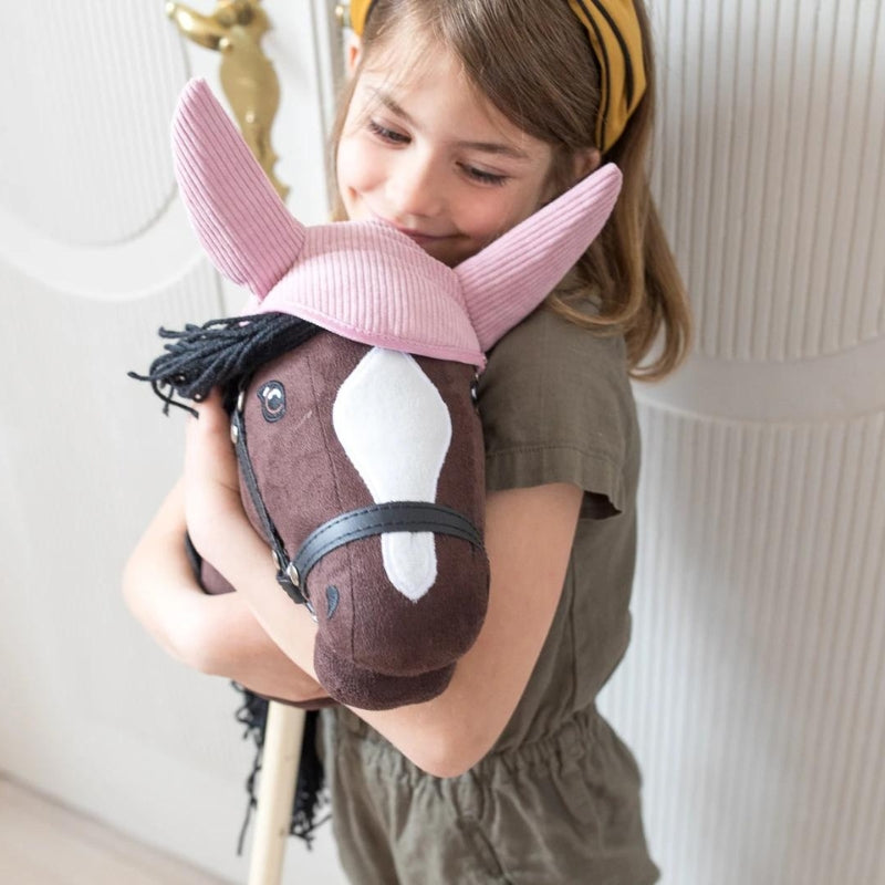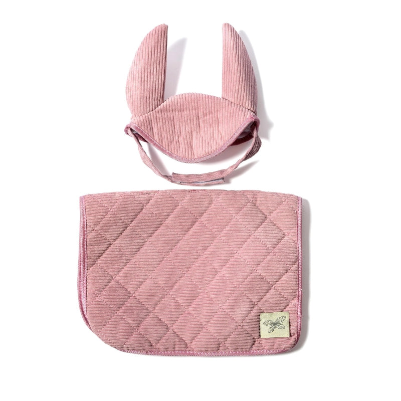 ByAstrup - Zadeldek en muts voor stokpaard - Corduroy - Roze