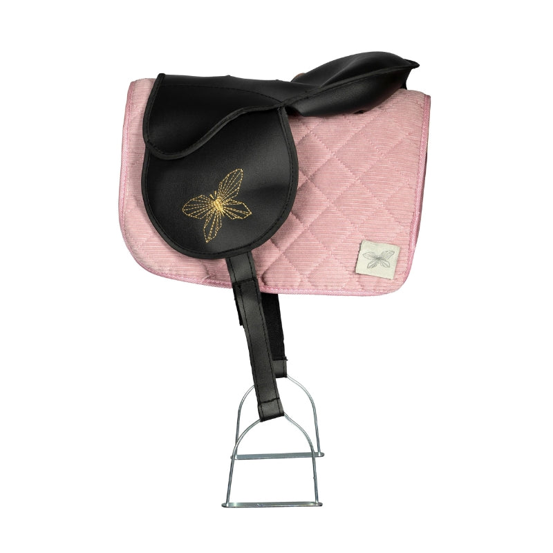 Kleed het stokpaard aan met dit mooie zadeldek en muts van roze Corduroy stof. Deze set is perfect om wat luxe toe te voegen aan het rollenspel met het stokpaard. Het bevestigen van de muts en het zadeldek is speciaal ontworpen zodat dit authentiek aanvoelt en de fijne motoriek van een kind bevordert.