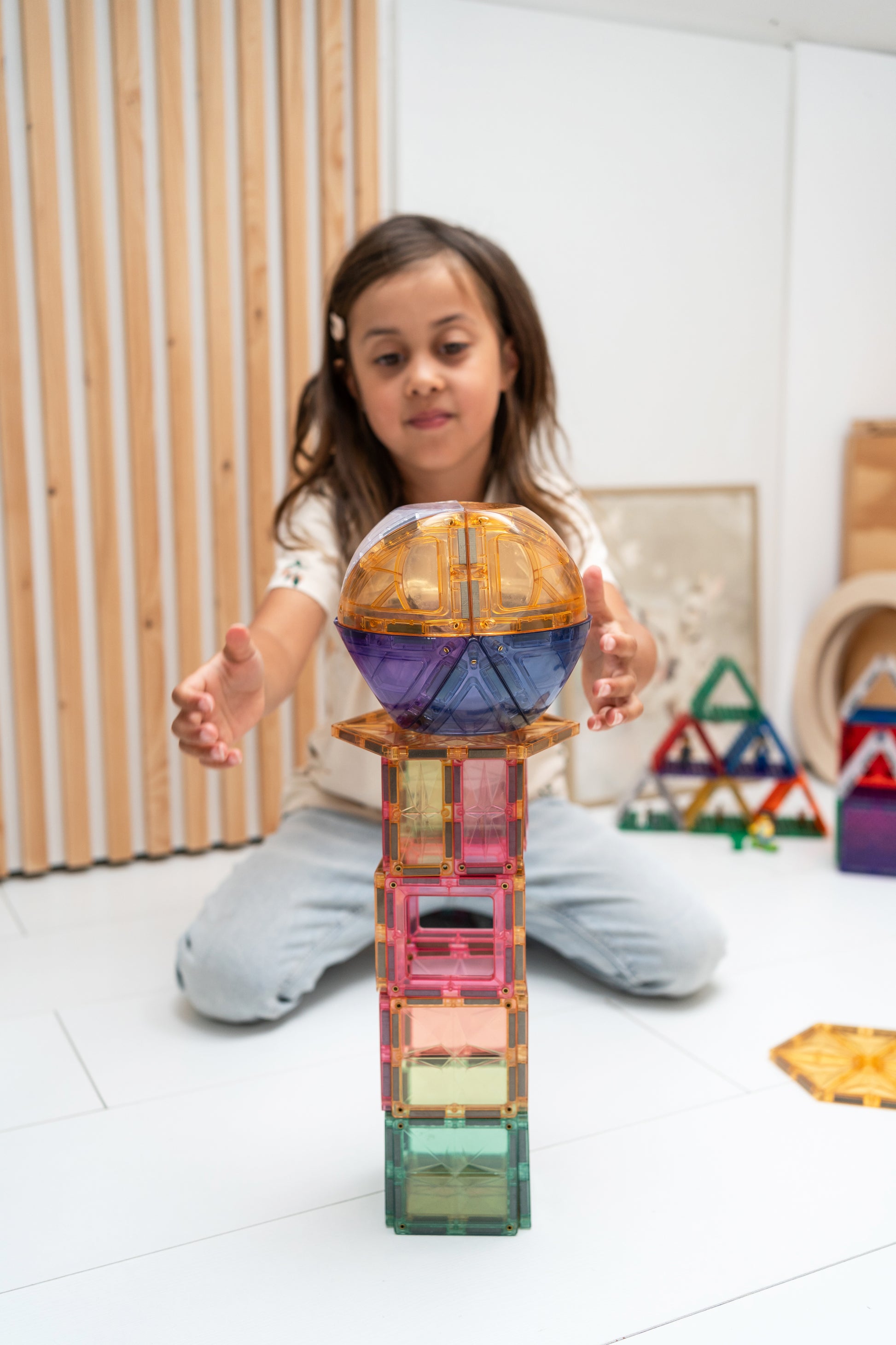 De Small Curved Pack Pastel bevat 34 magnetische tegels in zachte pastelkleuren, inclusief unieke gebogen vormen zoals driehoeken, vierkanten en zeshoeken. Deze set stimuleert creativiteit en ruimtelijk inzicht, en is geschikt voor kinderen vanaf 3 jaar. Gemaakt van BPA-vrij MABS-plastic, biedt de set een veilige en educatieve speelervaring.