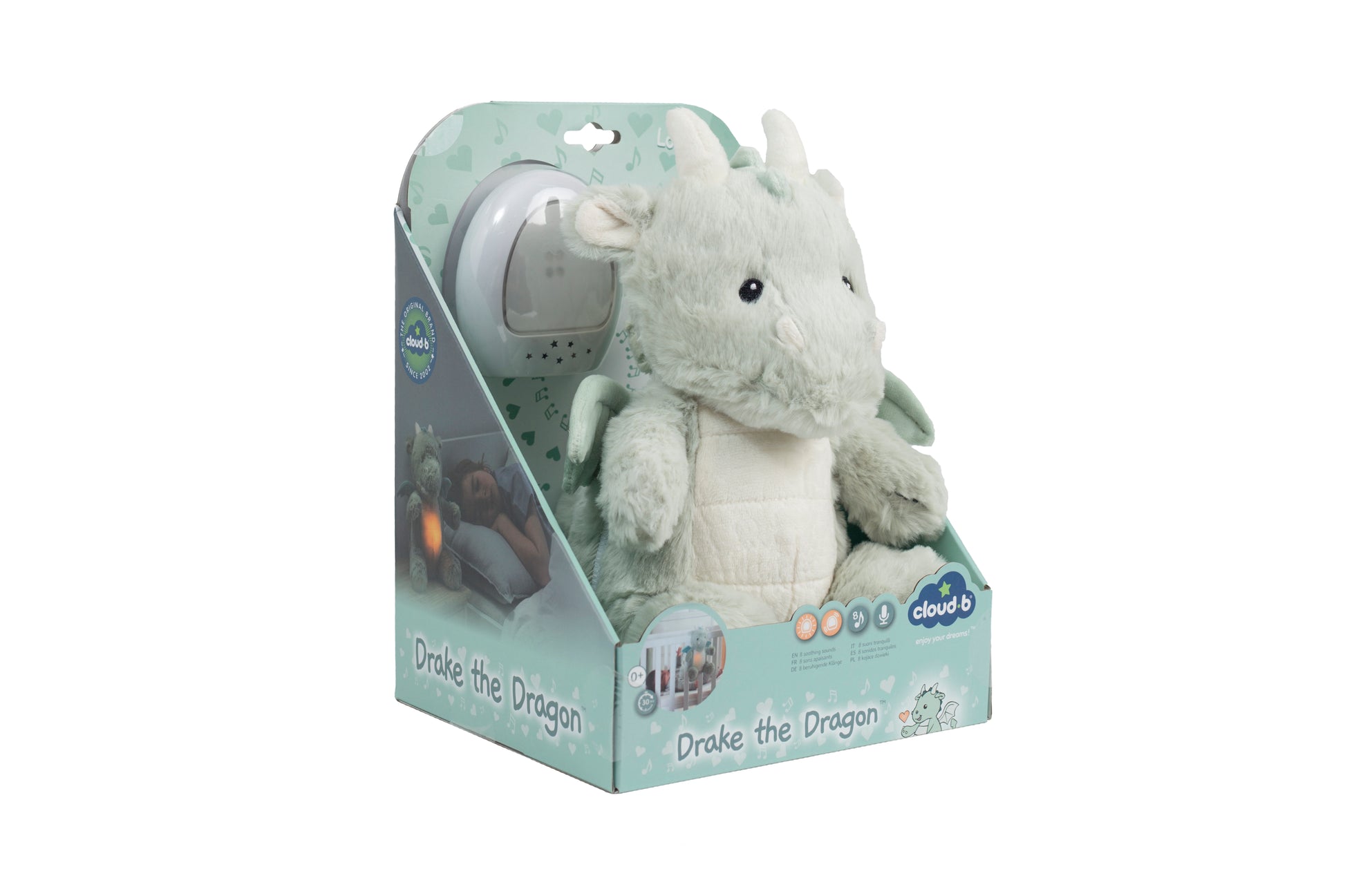 Deze LoveLight Buddy “Drake the Dragon” van Cloud B is een knuffel draken vriendje dat rustgevende activiteiten combineert: muziek, licht en sensoren. Hij is perfect om baby’s te kalmeren voor het slapen gaan.