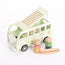 - Set bevat: houten camper met 2 houten poppetjes, verwijderbaar bed/keukengedeelte en een surfplank