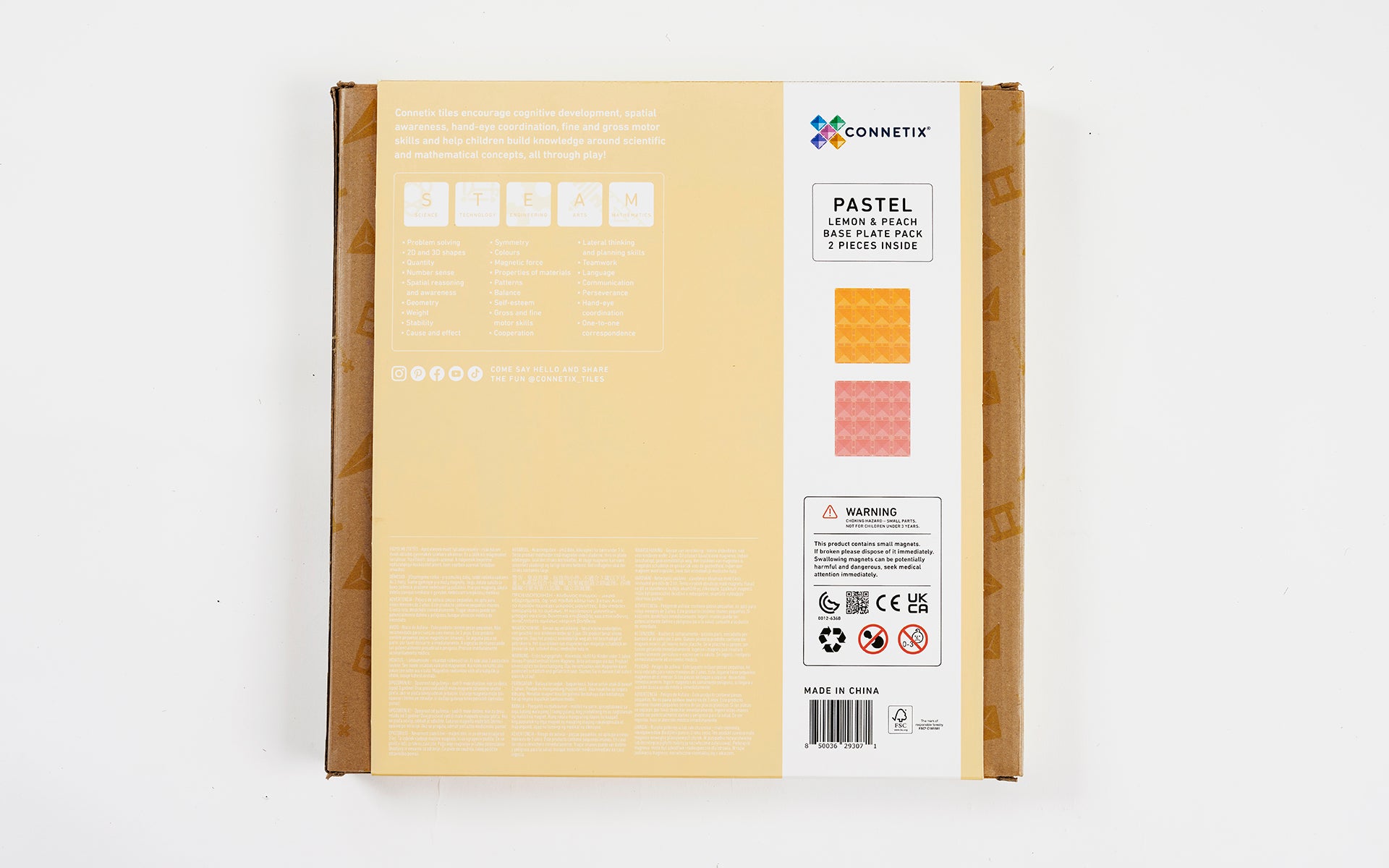 De magnetische tegels van CONNETIX zijn STE(A)M speelgoed, all the way! Deze set bestaat uit 2 basisplaten van de Pastel Serie. Ze zijn 30 cm x 30 cm waarmee je twee keer zo hoog kunt bouwen!