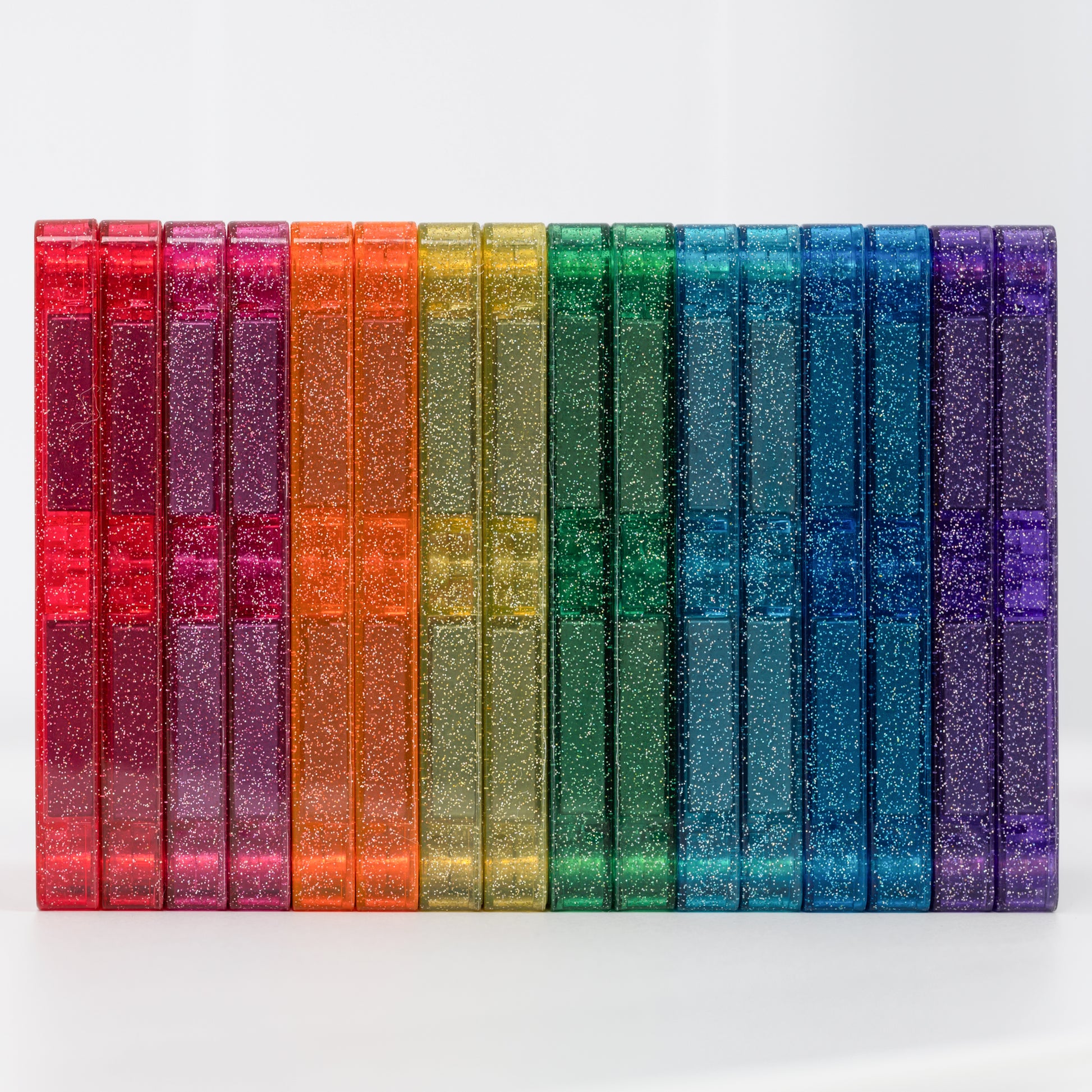Met de CONNETIX Glitter Castle Pack – 48-delig bouw je glinsterende kastelen, torens en fantasierijke structuren. Deze set bevat 32 standaard vierkanten, 8 gelijkzijdige driehoeken, 8 gelijkbenige driehoeken en een inspiratieboekje. De transparante tegels met glittereffect zorgen voor een magisch lichtspel en voegen een feestelijk accent toe aan elk bouwwerk.