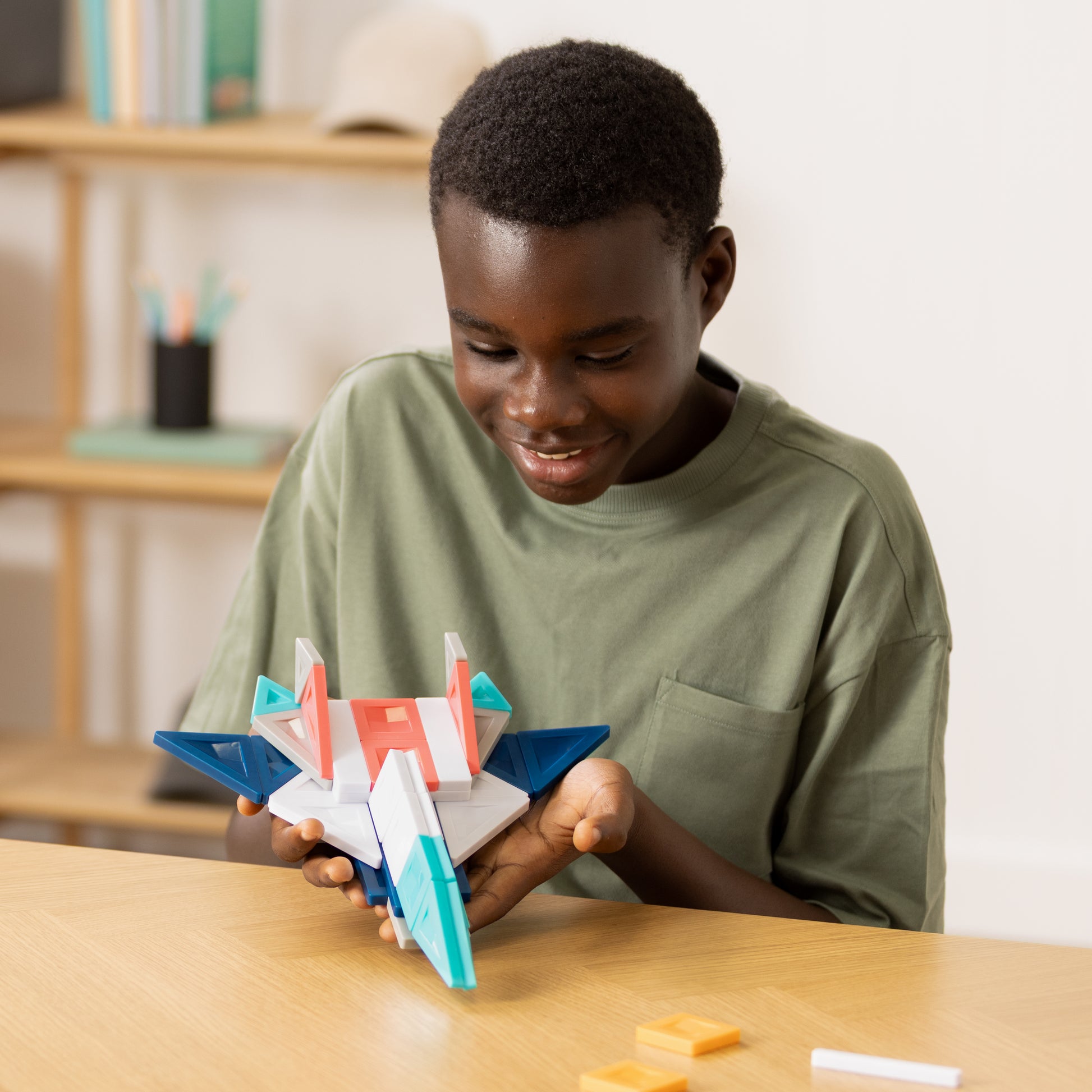 De ultrasterke magneten zorgen ervoor dat je ontwerpen stevig blijven zitten, zelfs wanneer je ze optilt of verplaatst. De set bevat naast klassieke vormen ook unieke onderdelen zoals planken en palen, die extra stevigheid geven aan functionele bouwwerken zoals meubels, voertuigen, dieren en robots. Alles uitgevoerd in zes verfijnde, eigentijdse kleuren voor een strakke, esthetische uitstraling.