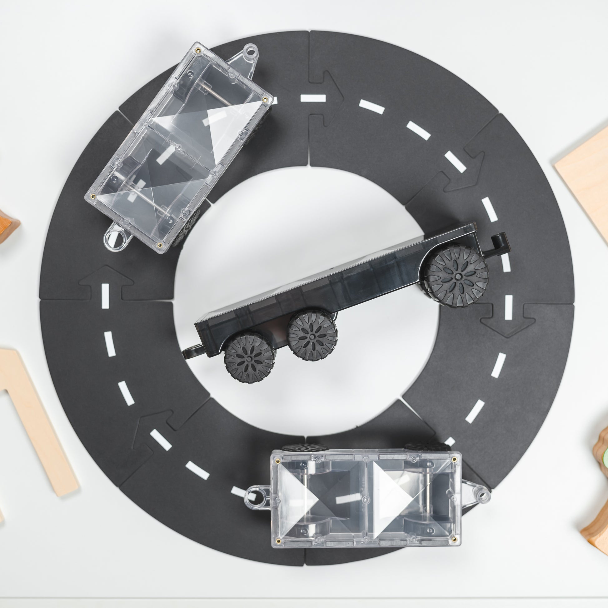 Maak je klaar voor heel veel voertuigplezier met het CONNETIX Transport Pack. Dit pakket is ontworpen met autoliefhebbers in gedachten en bevat 3 onderstellen om auto's of treinen mee te bouwen: 2 doorzichtige en 1 donkergrijze. En ze hebben echte rubberen wielen! Daarnaast nog een heleboel tegels om je voertuigen op te bouwen.