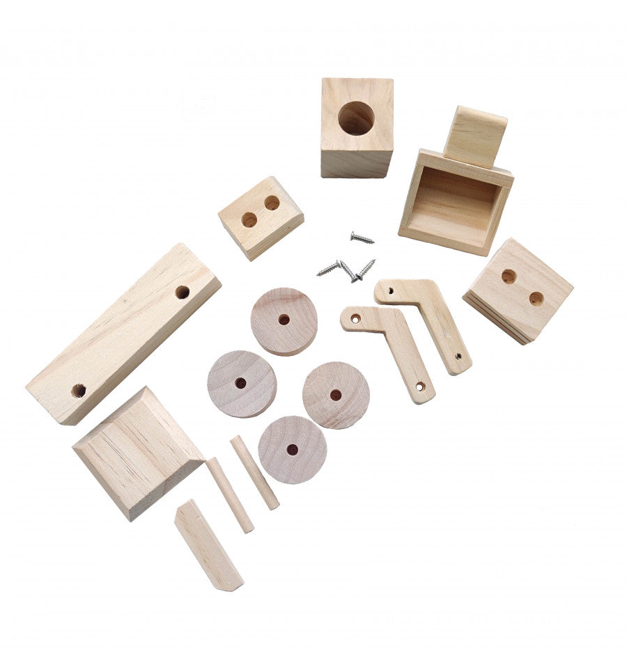 Dit is een gaaf bouwpakket om eerst je eigen voertuig te bouwen, en dan te spelen. De voorlader en wielen kunnen bewegen. Na in elkaar zetten is deze tractor super leuk te gebruiken om mee te spelen. Dit bouwpakket van een tractor met voorlader kan een kind vanaf 5 jaar met hulp in elkaar zetten. Houtlijm of knutsellijm is wel verreist en niet inbegrepen.