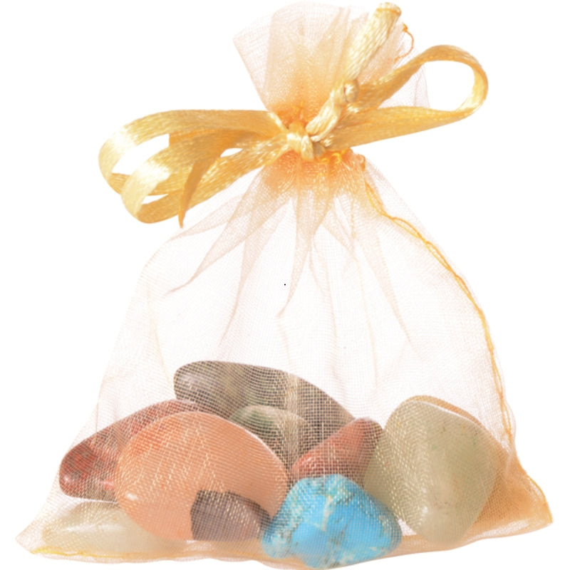Deze edelstenen - verpakt in een organzazakje - zijn klaar om als cadeautje weggegeven te worden of ergens neergelegd te worden ter decoratie. Met hun mooie kleuren, vormen en structuren prikkelen ze ook de visuele prikkels. Gebruik ze als piratenschat, om te tellen of te sorteren... de mogelijkheden zijn talrijk!