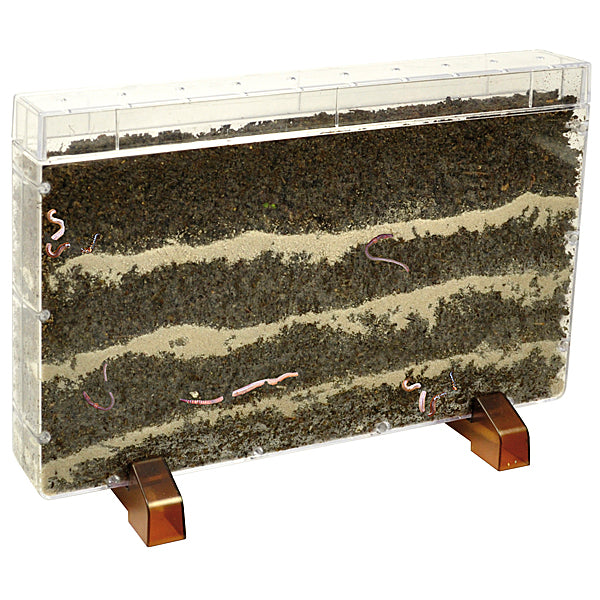 Dit is echt boeiend, kinderen zullen vol verwondering voor deze bak staan. Dit wordt experimenteren en observeren. Leer hoe wortels ontkiemen of wormen hun weg vinden en daarbij de grond ventileren.