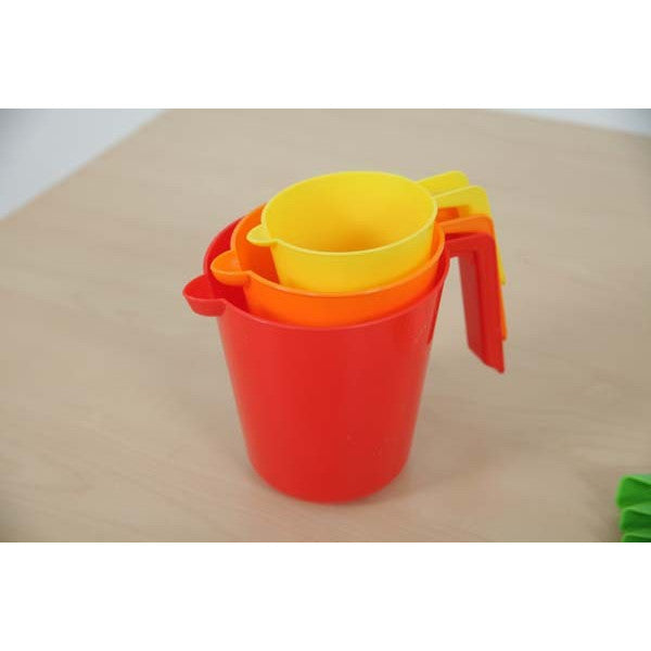 De set bevat kannen van 250 ml, 500 ml en 1000 ml, waardoor kinderen een breed scala aan metingen kunnen verkennen en begrijpen. Geschikt voor kinderen vanaf 3 jaar.