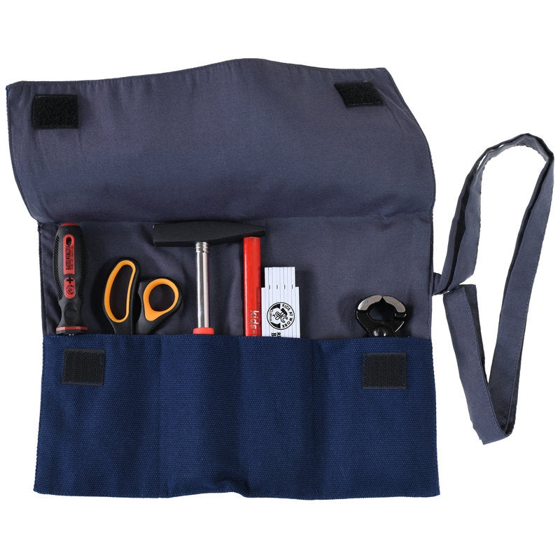 In deze gereedschapsetui zit veel gereedschap die nodig zijn om in en rondom het huis te (helpen) klussen. Een batterij vervangen, ergens een spijkertje inslaan, een plankje ophangen of iets opmeten. Kinderen vinden helpen klussen of zelf knutselen vaak erg leuk. Na het klussen moet er wel worden opgeruimd. De gereedschapsetui heeft 5 vakken om gereedschap in te steken. Sluit de etui met klittenband, rol de etui op en knoop hem tot slot dicht. Het gereedschap kan op deze manier compact opgeborgen worden of verplaatst worden.