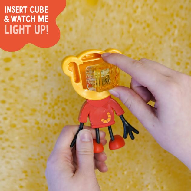 Voor kinderen wordt in bad spelen nog leuker met Glo Pals. Dit vrolijke poppetje van Glo Pals komt in water tot leven met de bijgeleverde sensorische kubussen. Doe een kubus in het poppetje, laat het in water vallen en zie hoe de kubus -en dus het poppetje - licht geeft!