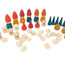 Mooie kabouterset van het Spaanse merk Grapat om uren mee te spelen. De mogelijkheden van deze uitgebreide set zijn eindeloos. De set bestaat uit 6 Kabouters, 6 paddenstoelen, 3 gele bijenkorven, 6 groene kegels, 3 vuurtjes en 18 kleine munten. Het is leuk om de set aan te vullen met vondsten uit het bos en om zelf verhaaltjes te verzinnen. De set is ook heel geschikt om de seizoenstafel mee aan te kleden. Bij de set wordt ook een handige katoenen zak meegeleverd om de set in op te bergen of in mee te nemen