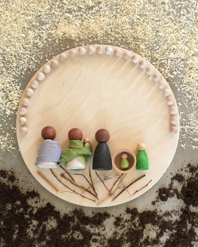 Rond houten bord. Bord om het vrije spel van het kind te stimuleren en af te bakenen.
