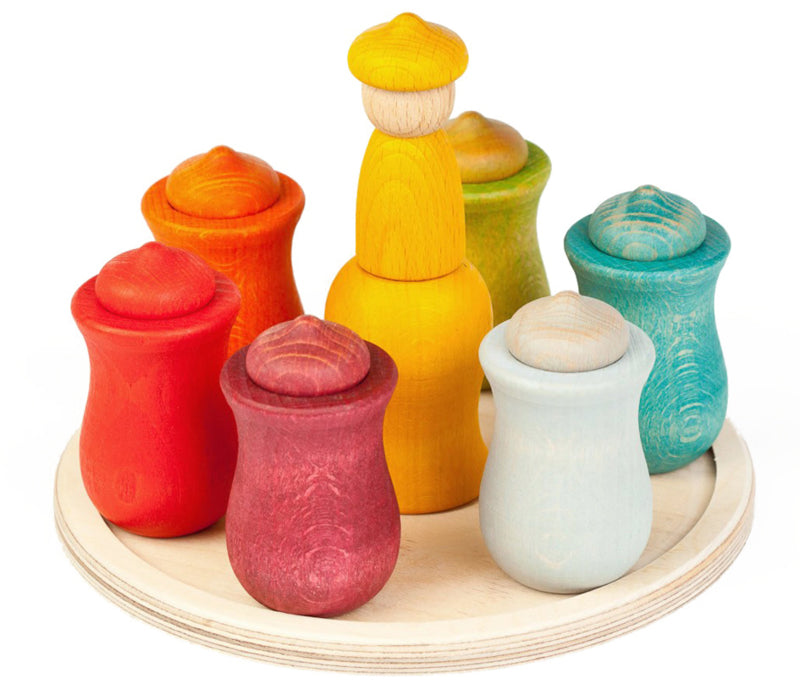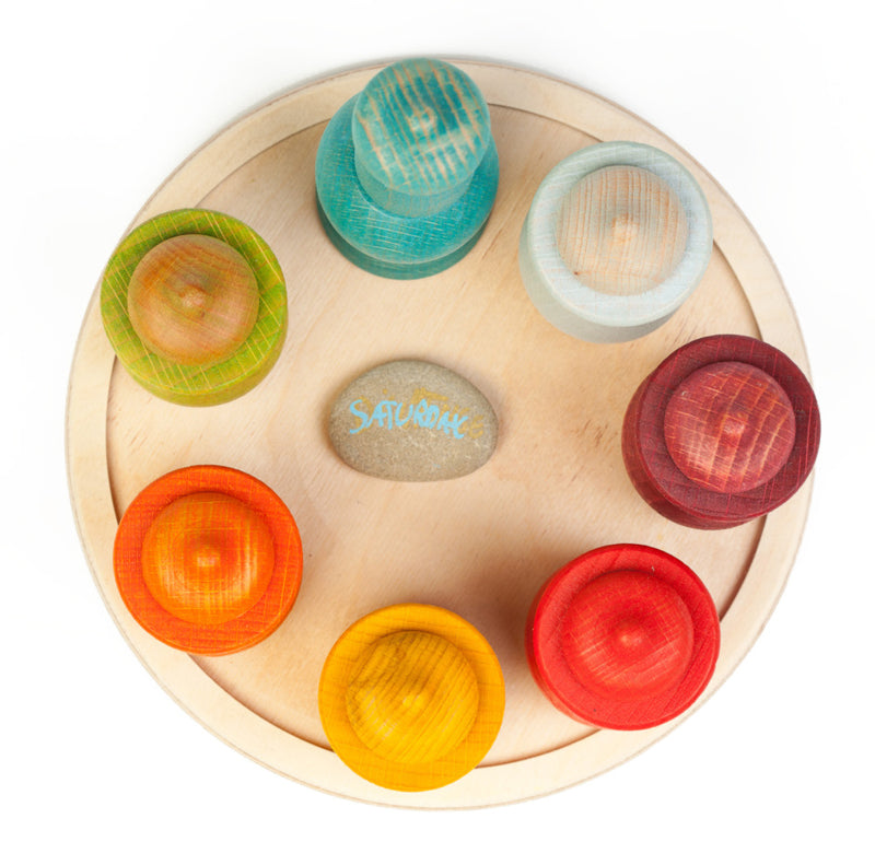 Een bijzondere weekkalender om het begrip tijd en de dagen van de week inzichtelijk te maken voor kinderen. De set bestaat uit een houten plateau met daarop 7 poppetjes in corresponderende bakjes in 7 verschillende kleuren. Elke kleur staat voor een dag van de week. Ook leuk om er stenen bij te leggen met daarop de dagen van de week.