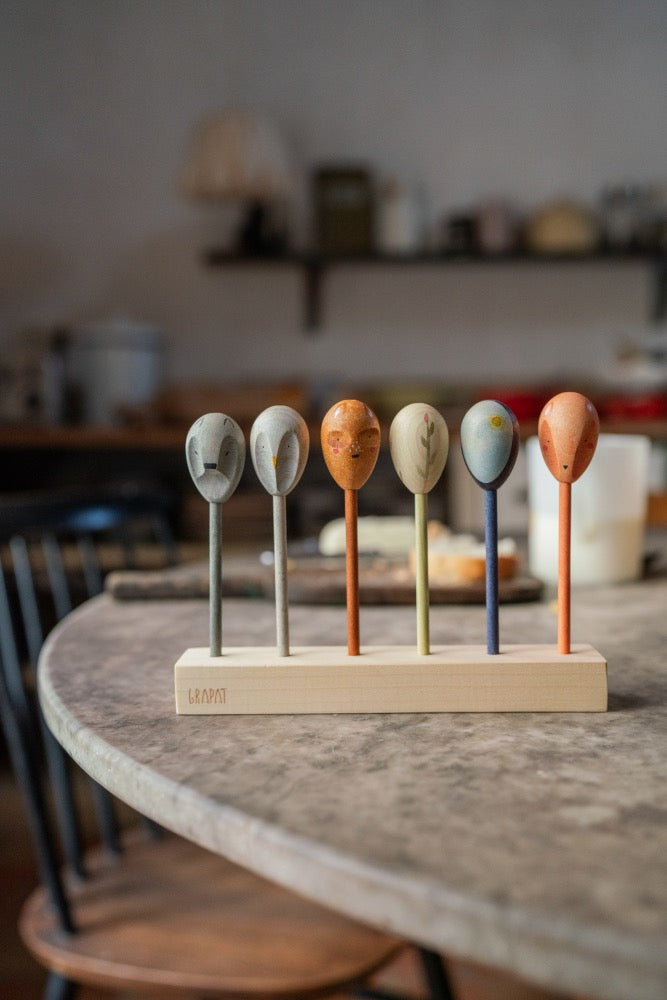 Met de Grapat Twin Souls Puppets wordt elk houten figuurtje een nieuwe ontdekking. Deze set bestaat uit zes houten poppetjes, waarbij elk figuur aan beide kanten een ander karakter heeft. Zo ontstaan twaalf unieke personages, klaar voor allerlei verhalen en avonturen.
