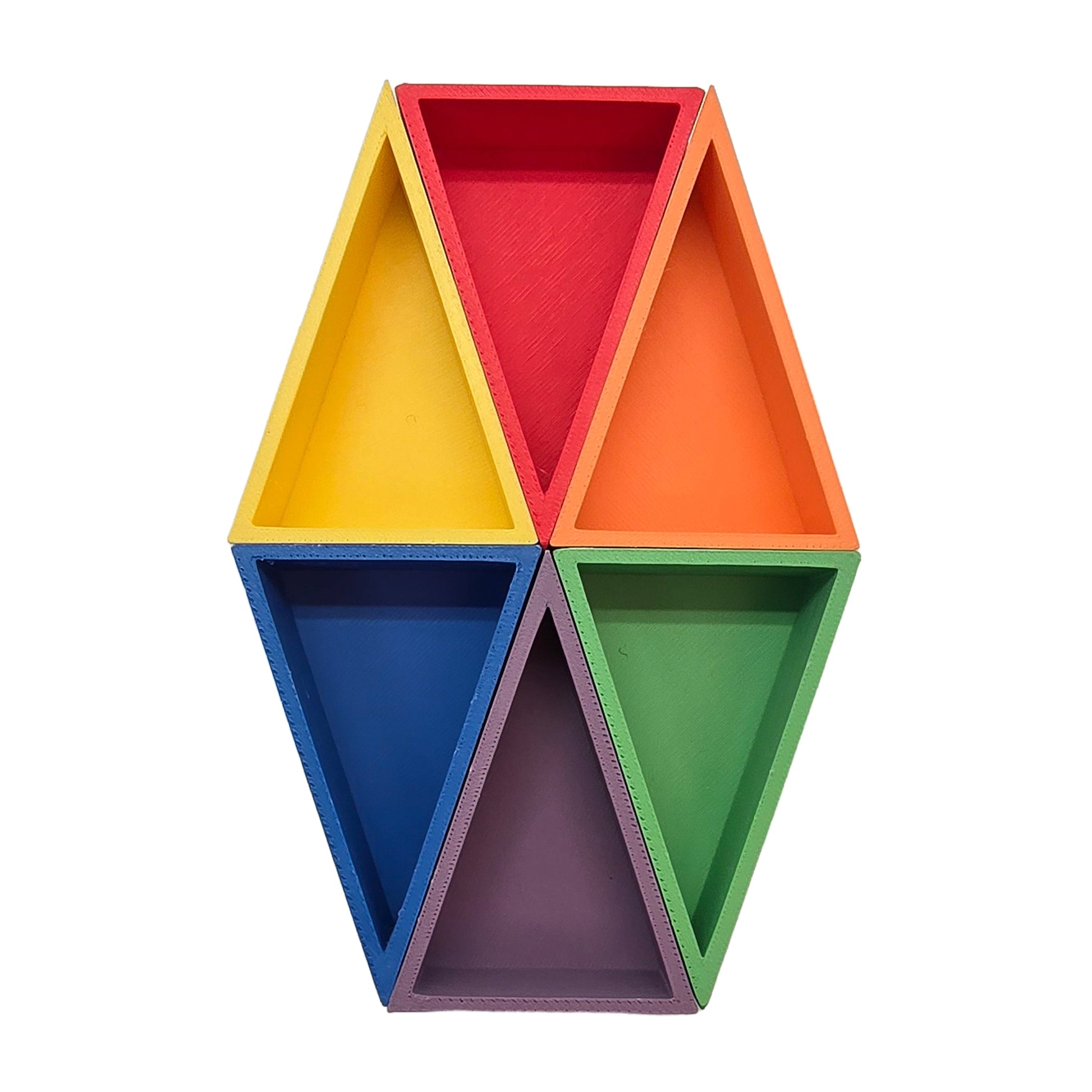 Elk bakje heeft dezelfde gelijkbenige driehoeksvorm, waardoor je ze eenvoudig kunt combineren en stapelen. Perfect voor sensorisch speelgoed activiteiten waarbij structuur en overzicht belangrijk zijn. De mandigo driehoek bakjes maken het sorteren van kleine voorwerpen, natuurmaterialen of spelonderdelen overzichtelijk en leuk.