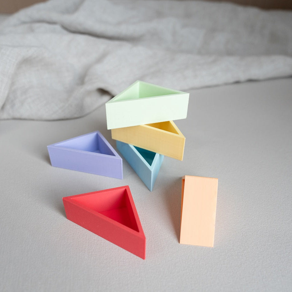 Ontdek de veelzijdige Grennn 'mandigo' pastel rechte driehoek - het perfecte hulpmiddel voor creatief en educatief spel! Deze prachtige driehoekige bakjes zijn speciaal ontworpen om je kind te helpen bij het sorteren en organiseren van verschillende materialen tijdens sensorisch spel.