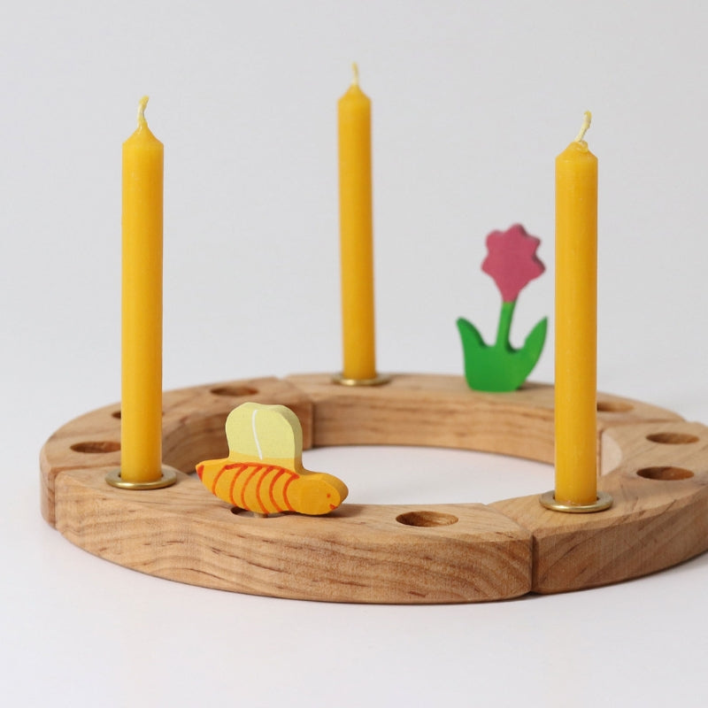 Met de jaarringen en stekers creëer je een bijzonder ritueel met verjaardagen en andere bijzondere momenten in het jaar. Bij een verjaardag plaats je er bijvoorbeeld het aantal kaarsjes van de leeftijd in. Hier kun je dan nog een cijfersteker aan toe voegen en stekers die passen bij de interesses van het kind, bijvoorbeeld stekers van de lievelingsdieren. Ook is het leuk om met behulp van de jaarring af te tellen naar een verjaardag of een andere bijzondere dag. Of haal met de jaarring het seizoen naar binnen, met stekers passend bij het seizoen.