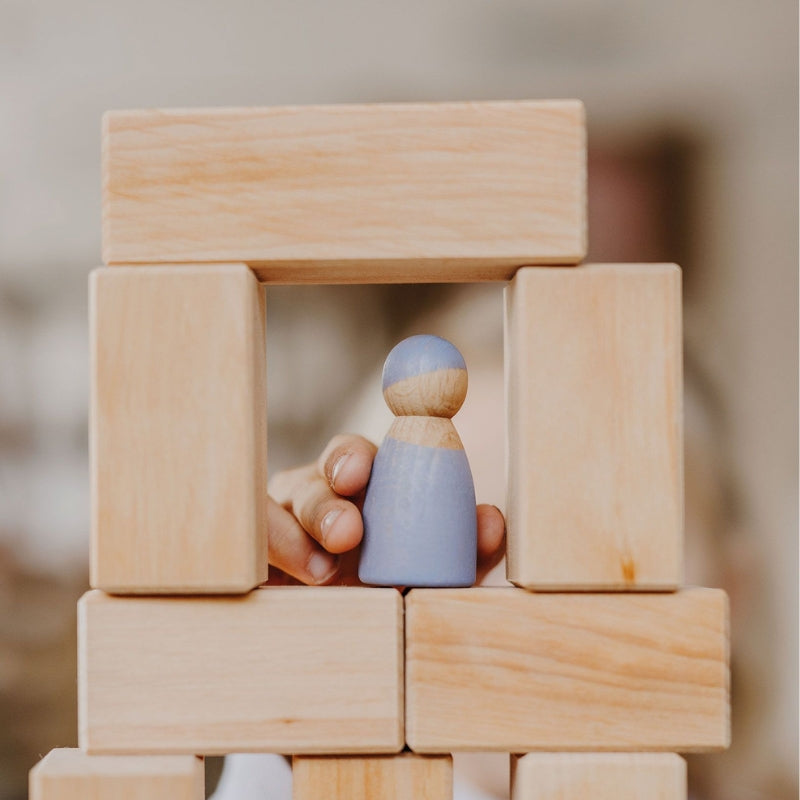 De blokken zijn gemaakt van duurzaam Europees Lindenhout en zijn gebeitst met natuurlijke verfstoffen. Doordat het hout alleen gebeitst is en niet gelakt behoudt het zijn natuurlijke textuur.