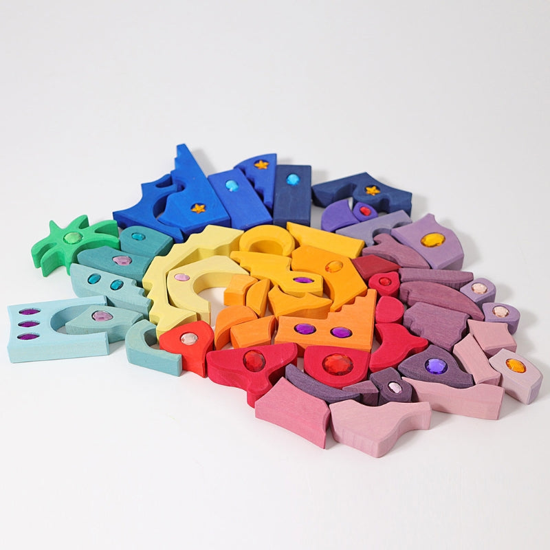 Door deze set worden kinderen aangemoedigd om een eigen bedacht wereldje te vormen. Er is geen juiste of onjuiste manier van spelen met Grimm's, om die reden worden alle speelsets zonder instructies geleverd. Het bevordert de creativiteit, fantasie, oog-handcoördinatie, het visueel inzicht en de fijne motoriek.