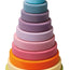 Grimms houten ringentoren in vrolijke pastel kleuren. Bevordert de motoriek en helpt bij het aanleren van kleuren, door de onderdelen van de toren te sorteren en te stapelen. De toren is ongeveer 21 cm hoog en bestaat uit 11 schijven.