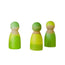 Prachtige set van 3 houten poppetjes in neon groene kleuren. Leuk te combineren met de Grimm's blokkensets of de regenboog. Grimm’s speelgoed biedt ruimte voor eigen fantasie en is op heel veel verschillende manieren inzetbaar.