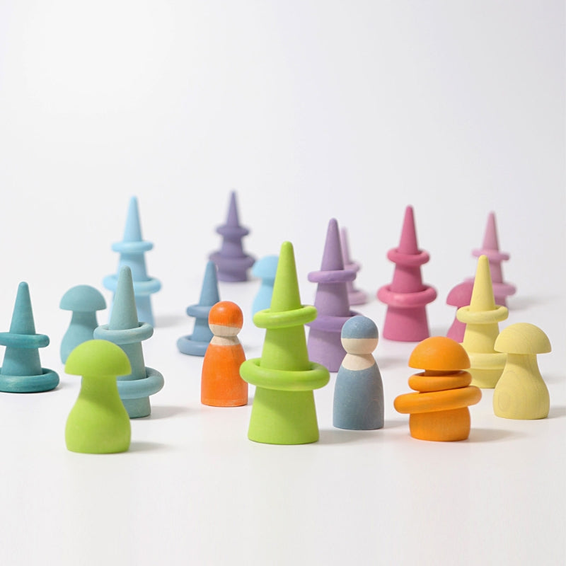 Grimm's biedt spelmateriaal zonder instructies, met een open einde. Het uitgangspunt is om kinderen vrij te laten spelen met natuurlijke materialen die de creativiteit en fantasie stimuleren. Losse onderdelen in zachte kleuren moedigen kinderen aan om een eigen bedacht wereldje te vormen. Er is geen juiste of onjuiste manier van spelen met Grimm's, om die reden worden alle speelsets zonder instructies geleverd.
