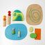 Het bevat essentiële onderdelen van verschillende speelsets. Dit zorgt voor extra variatie en talloze speelmogelijkheden. Graag wil Grimm's kinderen stimuleren om deze set te integreren met de natuur. Kinderen kunnen gevonden voorwerpen zoals blaadjes en takken opgenemen in hun spel.