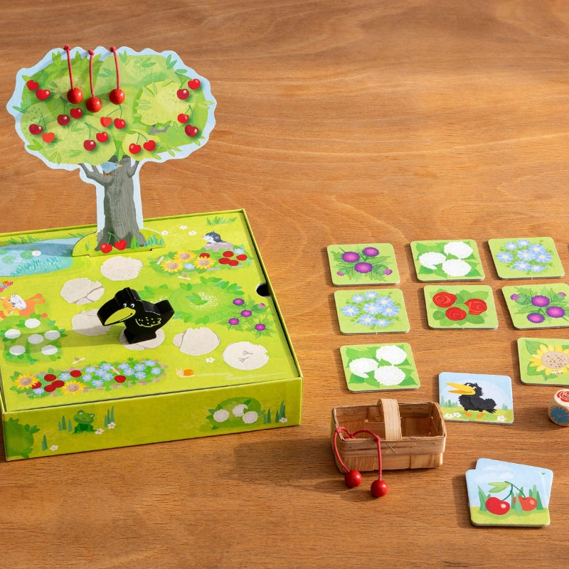De spelers moeten de kersen van de 3D-kersenboom halen voordat de raaf dat doet. Door met de gekleurde dobbelsteen te rollen wordt er bepaalt of er een kers in de fruitmand mag worden gelegd, of dat de raaf dichterbij komt.