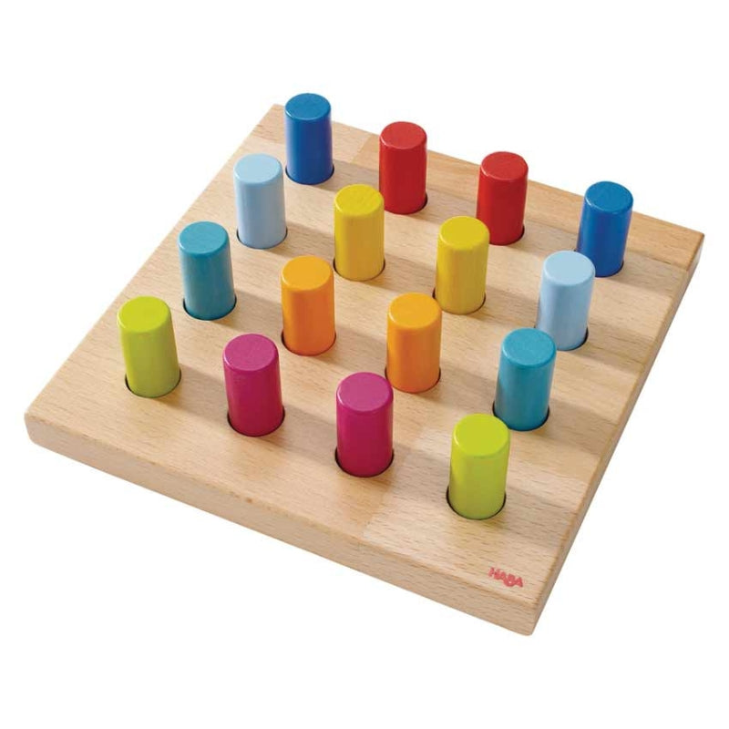 Verbeter motoriek, kleurherkenning en verbeeldingskracht met de HABA Rainbow Whirls. Kies een pin om op het bord te plaatsen en stapel de ronde blokken in de overeenkomstige kleur of mix en match. Kijk of je een plaatje kunt maken of tel hoeveel blokjes je op elke pin kunt passen. Heel veel leerplezier en eindeloze variaties om te maken!
