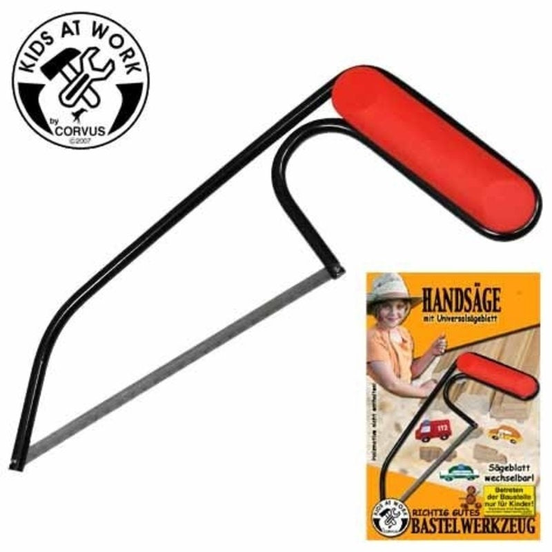 Deze metalen zaag is bedoeld om zowel hout als metaal mee te zagen. De zaag heeft een verwisselbaar zaagblad van 15 cm lang. Het product is écht gereedschap, alleen gemaakt op kinderformaat en ook het handvat is speciaal ontworpen voor kinderhanden. Daarom wordt gebruik onder toezicht sterk geadviseerd.