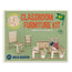 Inhoud: Twee lesbankjes met tafel, een lessenaar, schoolbord, ABC-bord, schoolkast. (verf, lijm en andere accessoires niet inbegrepen.