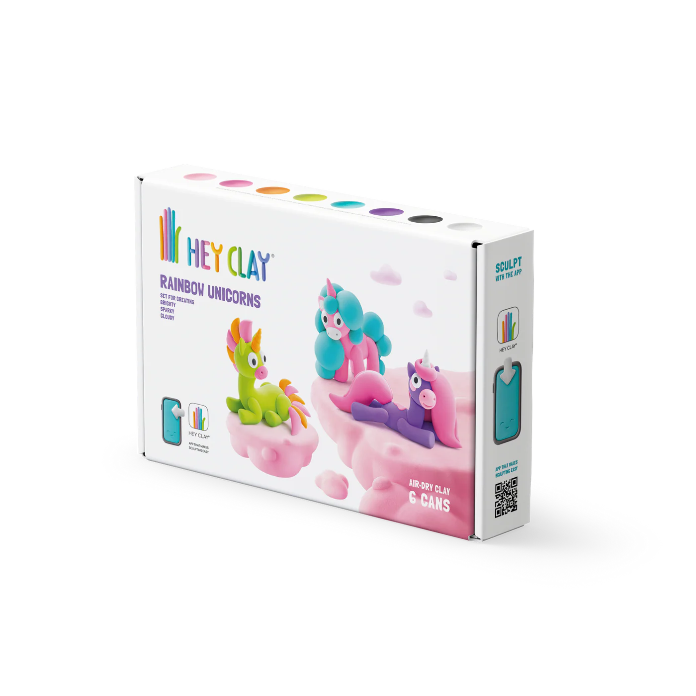 Boetseer vrolijk uitziende, gekleurde eenhoorn figuurtjes met de boetseerklei én bijbehorende app van Hey Clay! De klei plakt niet en droogt snel, daardoor kunnen kinderen de figuurtjes al snel gebruiken als speelgoedpoppetjes. Extra uitdagend is de bijbehorende app die stap voor stap laat zien hoe kinderen de verschillende figuurtjes kunnen maken. Zo leren ze nieuwe boetseertechnieken, het opvolgen van instructies en blijft het voor kinderen boeiend creatief bezig te zijn! Superleuk speelgoed voor creatieve en leergierige kinderen!