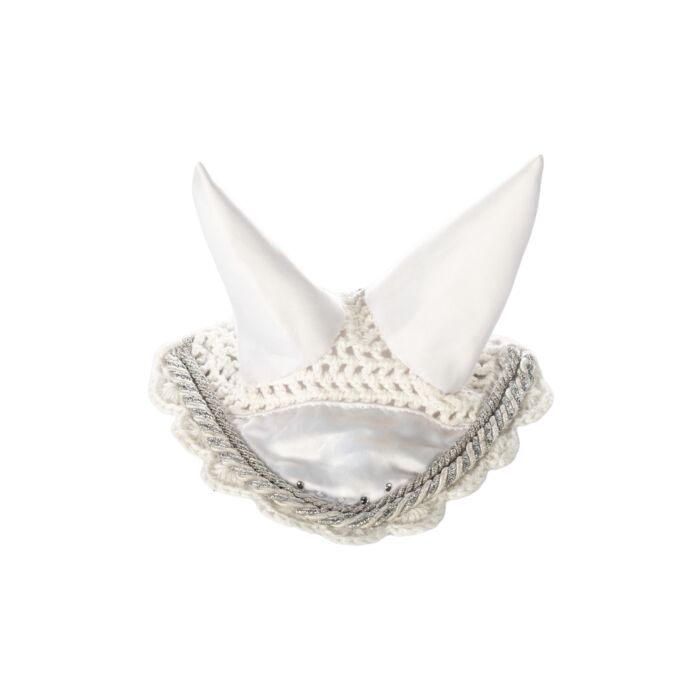 Dit speelgoedoorennet voor stokpaarden is een stijlvol accessoire dat over de oren van het stokpaard wordt geplaatst. Het netje is afgewerkt met een decoratief koord en voorzien van glinsterende steentjes als highlight, wat zorgt voor een elegante uitstraling tijdens hobby horsing.