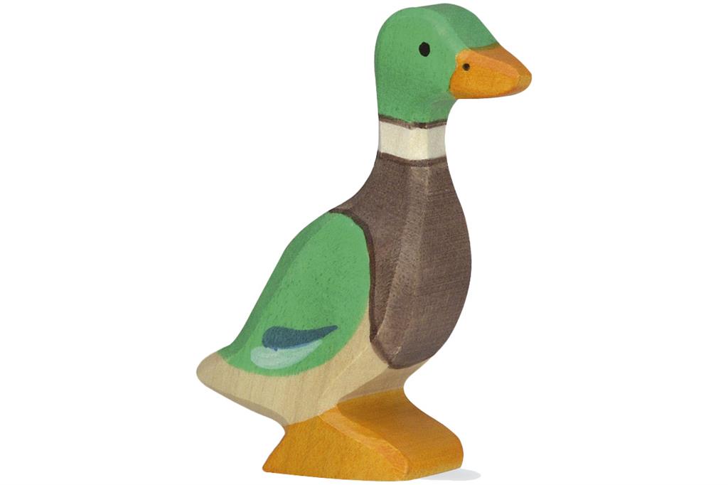 Deze mooie eend is gemaakt door het Duitse merk Holztiger. De eend is handgemaakt en dus uniek. Hij is makkelijk vast te pakken en staat garant voor uren speelplezier.
