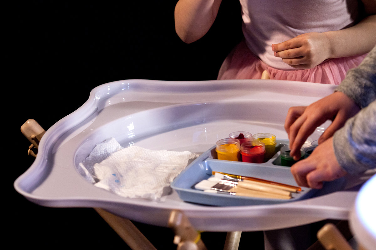 Deze doorschijnende schaal past perfect op de licht tafel (niet inbegrepen) van JonEly. Zo kan de lichttafel tevens gebruikt worden als water- en moddertafel, voor experimenteren en onderzoekend leren met water, kleuren of zand. De 4 cm diepe kom met rand zorgt ervoor dat er diverse materialen in gebruikt kunnen worden die de zintuiglijke ervaringen vergroten.