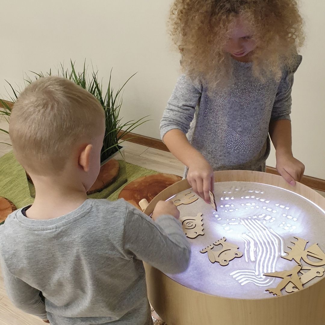 Kinderen schilderen met deze kammen als het ware in het zand met deze dieren en voertuigen vormen. Elk figuur geeft weer een ander motief. Wanneer je de kammen gebruikt in combinatie met Lichttafel krijg je een geweldig effect door het licht wat er doorheen schijnt. De rustige figuren samen met zand en licht prikkelt de zintuigen van de kinderen.